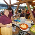 Um 15 Uhr schon hatte man mit dem Aufbau begonnen, „pünktlich um 18 Uhr fing es dann an zu schütten.“ Und doch strahlten die Verantwortlichen. „Wir finden es toll, dass trotzdem so viele Leute mit ihren Regenschirmen gekommen sind“, meinten die Landfrauen mit Blick auf das vom Himmel platschende Nass.