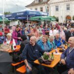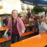 Ein vielkehliges „Juhuuu“ schallte durch die Ortsmitte, als plötzlich die Strahlen einer längst tiefstehenden Abendsonne durchbrachen und sich ein riesiger Regenbogen über den Himmel spannte. Kaum blieben die Tropfen vollends aus, füllten sich auch die freistehenden – wunderschön mit blühenden Handtaschen dekorierten – Tische und Bänke. Allüberall wischten Landfrauen fleißig trocken, und wo sie so schnell nicht hinterherkamen, legten neu ankommende Besucher selbst mit Hand an.
