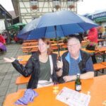Sämtliche fest überdachten Plätze waren besetzt. Und dort, wo große Sonnenschirme über Tische und Bänke gespannt waren, hatten sich zum zusätzlichen Schutz vor dem aus allen Wolken und teils von allen Seiten kommenden Nass bunte Regenschirmburgen gebildet. Regenjacken taten ihr Übriges.