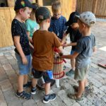 Zu Beginn gab es ein kleines Kennenlernspiel „Tuff tuff tuff der Traubenexpress“, der zur ersten Station „Ernten von hofeigenen Trauben“ fuhr. Danach fuhr der Traubenexpress zu den Stationen Glasfläschchenbemalung, Trauben abbeeren, Trauben maischen, Trauben pressen mit der Handtrotte und eigener Muskelkraft. Jedes Kind reiste von Station zu Station, um zum Schluss seinen selbstgepressten Traubensaft in seiner Flasche in den Händen zu halten. Was zum Abschluss nicht fehlen durfte: die Verkostung. Es wurde reichlich Traubensaft vertilgt.