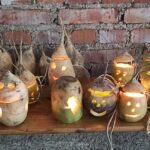 Dann ging es vor Anbruch der Dämmerung auch schon los mit der Schnitzerei. Jedes Kind erschuf seinen eigenen Geist mit ein klein wenig Hilfe der Großen oder auch ganz alleine mit geübter Hand. Das Er staunen und Raunen über das wirkungsvolle Ergebnis mit den flackernden Gesichtern der Rübengeister war groß. Alle Kinder konnten nun mit Feuerschein zurück ins Dorf laufen.