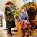 Die Kirchenbänke füllten sich rasch und neugierig beobachteten Groß und Klein, wie nach einer Begrüßung und Einstimmung die beiden Erzähl-Engel (gespielt von Merle Schäfer und Amelie Matt) ihre Fernrohre zückten. Die beiden Engel kommentierten einerseits das Geschehen damals in Bethlehem und schlugen andererseits eine Brücke ins Hier und Jetzt, indem sie sich dem Blickwinkel der Kirchenbesucher:innen anschlossen. Passend zum Lied „Wir suchen eine Bleibe“ machten sich Maria (gespielt von Mia-Marie Hund) und Josef (gespielt von Leon Kraus) auf Herbergssuche. Die großformatige, hell gestaltete Kulisse und die liebevoll ausgesuchten Kostüme und energisch agierenden Wirte ließen das Spiel sehr lebendig wirken. Josefs fürsorgliche Art und Marias leidender Blick rangen dem letzten Wirt einen recht barschen Hinweis auf den Stall vor den Toren der Stadt ab. Die beiden Engel sind entsetzt und merken an: „Die Menschen sind manchmal eigenartig. Da kommt das größte Glück ihres Lebens an ihrer Tür vorbei – und sie merken es nicht.“