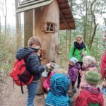 Das gemeinsame Wandern in der Gruppe bestärkte Groß und Klein darin, zusammen Anstiege zu meistern und die Kinder wagten die ein oder andere Kletterpartie an Tauen und Seilen. Eifrig wurden im Ort Bären gezählt und im Wald die Tiere erspäht: Ob mit dem bloßen Auge, dem Baumfernrohr oder per Glücksrad gedreht – alles war möglich. Spannend war es auch für die Kinder ins Riesenvogelnest zu schlüpfen oder durch einen engen, dunklen Dachsbau in Kindergröße zu krabbeln.