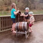 Das gemeinsame Wandern in der Gruppe machte den Kindern sichtlich Freude. Gemeinsam wateten die Kinder barfuß durch ein Bächle und versuchten sich an den Geschicklichkeitsspielen der Stationen unterwegs. Wasser aus einem Teich mit Eimern in Fässer zu schöpfen, war dabei für die Kinder der feucht-fröhliche Höhepunkt der Tour. Die sommerlichen Temperaturen lu-den auch geradezu zu einer Wasserspritzschlacht ein.
