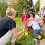 Nach den von Kindern und Eltern vorgetragenen Fürbitten, einem gemeinsamen Gebet und einem Abschluss im Chorsaal fand draußen die Fahrzeug segnung statt. Eltern sprachen Segenssprüche für ihre Kin- der, und die Kinder besprengten ihre Fahrzeuge mit Weihwasser. Als Erinnerung brachten sie Schutzengelaufkleber an ihren Rollern, Laufrädern und Fahr-rädern an. Auch ein Bollerwagen und zwei Kinderwagen wurden geseg-net. Danach drehten die Kin-der noch einige Runden auf ihren Fahrzeugen, während die Eltern beim Kirchenkaffee die Möglichkeit zum Austausch hatten.
