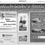 Pünktlich zum ersten Advent öffnet der Biberacher Weihnachtsmarkt in der Neuen Ortsmitte am Sonntag, 1. Dezember 2024, um 13.00 Uhr seine Pforten.