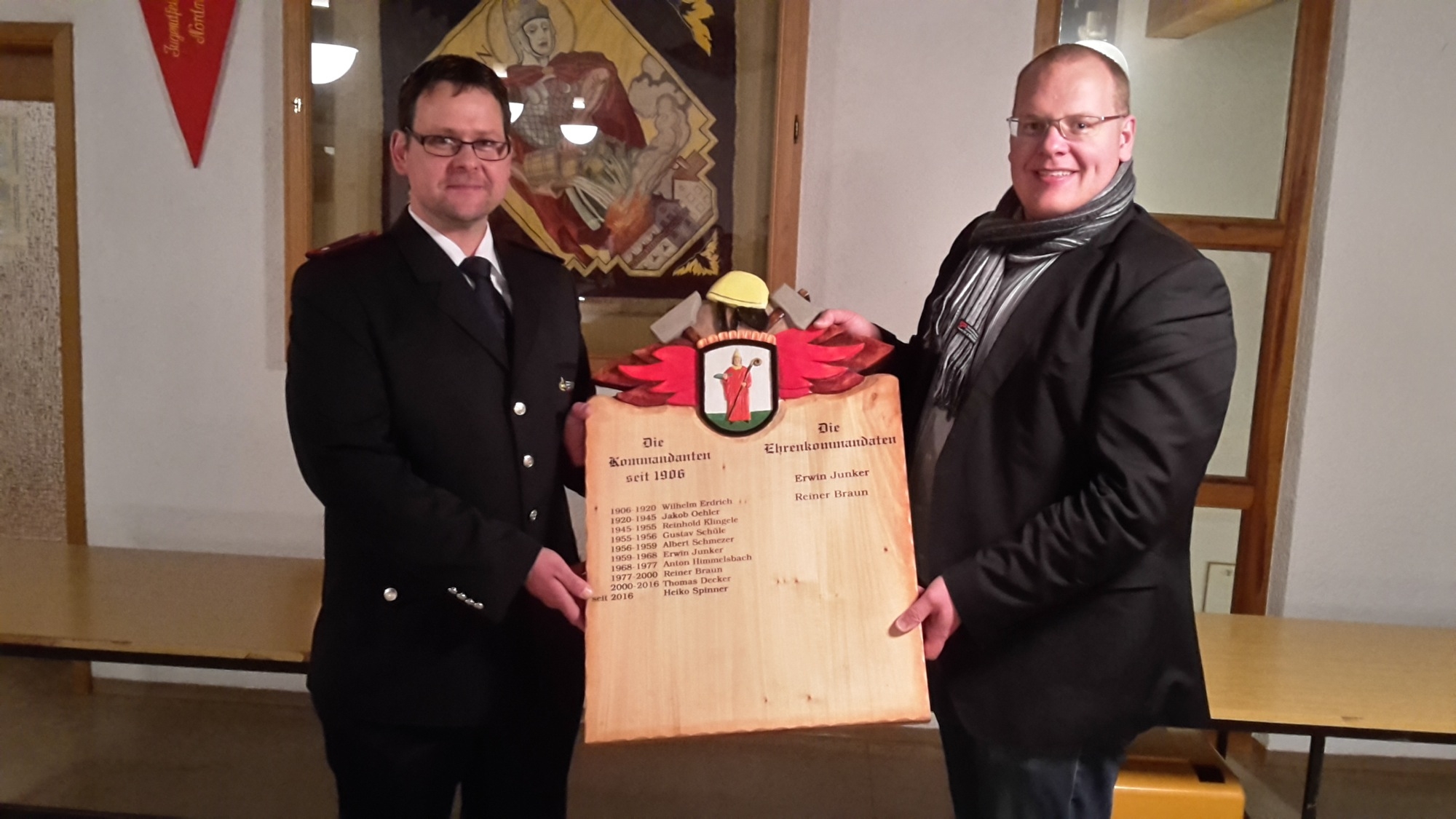 In seiner Ansprache bedankte sich Bürgermeister Erhardt für den ehrenamtlichen Einsatz aller Mitglieder der Nordracher Feuerwehr. Es muss immer mehr von der kostbaren Freizeit geopfert werden, um zum Beispiel die notwendigen Ausbildungen zu besuchen und die Fahrzeuge und Geräte einsatzbereit zu halten. Auch den jeweiligen Familienangehörigen dankte er für das Verständnis, wenn mal wieder die Feuerwehr ruft. Dem neuen Führungstrio bescheinigte er ein hervorragendes erstes Jahr ihrer Tätigkeiten und freute sich über deren außerordentlichen Einsatz für die Allgemeinheit. Der Feuerwehrbedarfsplan für 2017 wurde vom Gemeinderat genehmigt und man könne auch weiterhin mit der notwendigen finanziellen Unterstützung rechnen.