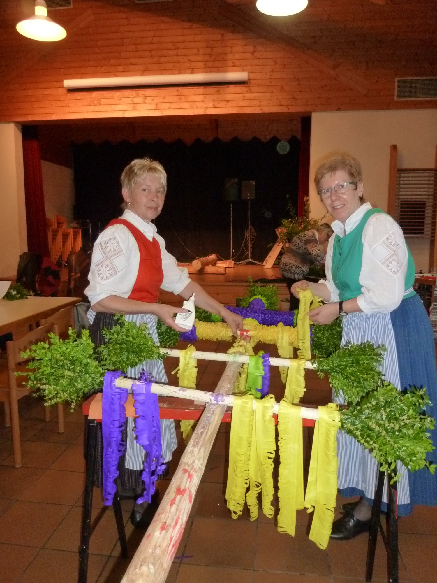 Den Mitgliedern der Trachtengruppe liegt die Fortführung dieser alten Tradition sehr am Herzen und sie haben es sich zur Aufgabe gemacht, diese Traditionen weiter zu geben und zu leben. Anschaulich wurde eine Palmstange von Beginn an gebunden. Die Gäste konnten am Schluss der Veranstaltung den fertigen Palmen sehen. Die Frauen der Gruppe zeigten, wie das Papier geschnitten und geklebt werden muss. Die Gäste konnten sich selbst Palmbüschel anfertigen.