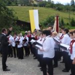 In der Pfarrkirche traf sich die Gemeinde zum Segen und festlichen Abschluss. Pfarrer Gerner dankte den Kom­munionkindern, dann dem »Chor der Klänge« und der Trachtenkapelle, die den Gottesdienst und die Prozession musikalisch und festlich umrahmt hatten, aber auch allen anderen, die bei der Planung und Durchführung des Festtages beteiligt waren. Nach dem eucharistischen Segen spielte die Trachtenkapelle den Choral »Großer Gott, wir loben dich«, und alle Gläubigen stimmten ein und sangen mit kräftiger Stimme mit.