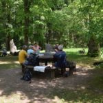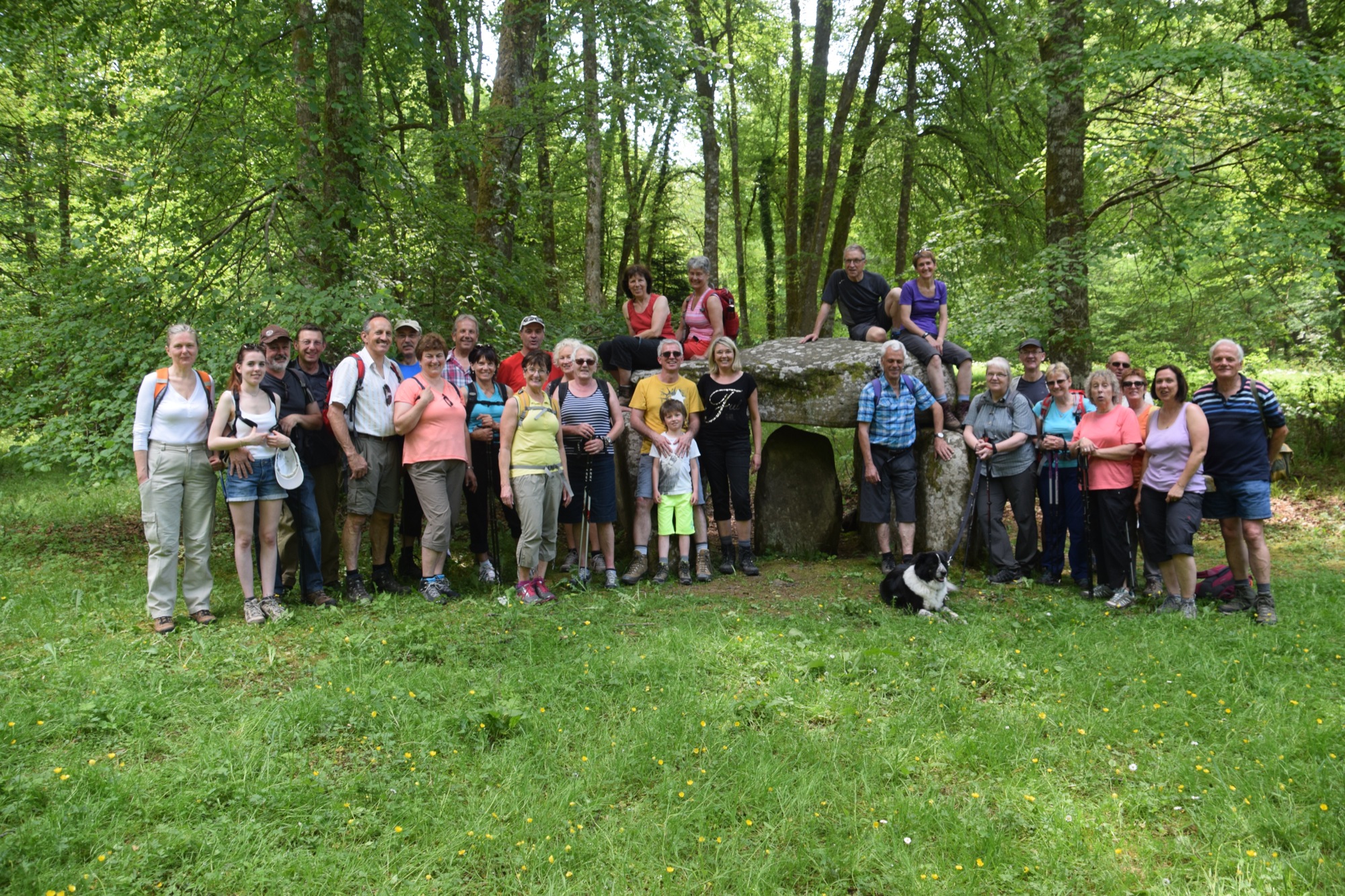 Zunächst musste allerdings der Ausgangspunkt mit dem Auto erreicht werden, der Parkplatz Eichwald, zwischen Klingenthal und Mollkirch gelegen. Von hier aus führte ein gut beschatteter Waldweg die Wanderer zum ersten Ziel »Le Verlorenes Eck«. Der einzigartige Rastplatz ist legendenumwoben. Hier wurden vor Jahren dreißig Menhire und Dolmen sowie drei Steintische aufgestellt. Eine große Waldhütte mit zwei großen Tischen lud die Wandergruppe zum Mittagessen ein.