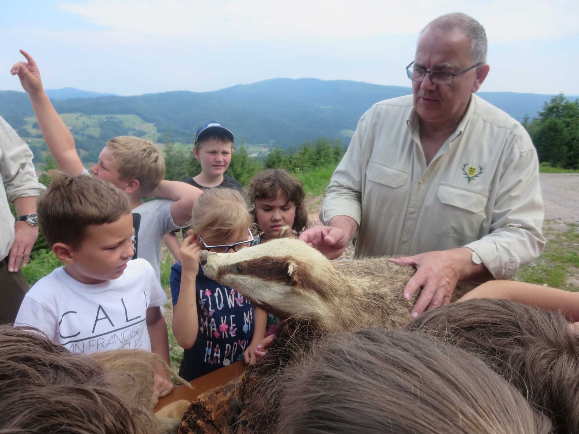 Die Tatsache, dass es sich um den letzten Schultag vor den Ferien handelte, gepaart mit einem grandiosen Ausblick bei herrlichem Sonnenschein, ließ die Kinderherzen höher schlagen. Am Ziel angekommen, erwartete die wissbegierige Kinderschar eine Vielzahl von Exponaten aus der heimischen Tierwelt. Die verschiedenen Tierarten wurden den Kindern nun einzeln vorgestellt, es wurde über deren Lebensweise, Besonderheiten und Eigenarten, deren Feinde sowie über deren Nutzen oder Gefahren berichtet. Die meisten der Anwesenden waren erstaunt darüber, wie viele Tierarten in unseren heimischen Wäldern und Feldern ihren Lebensraum gefunden haben.