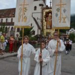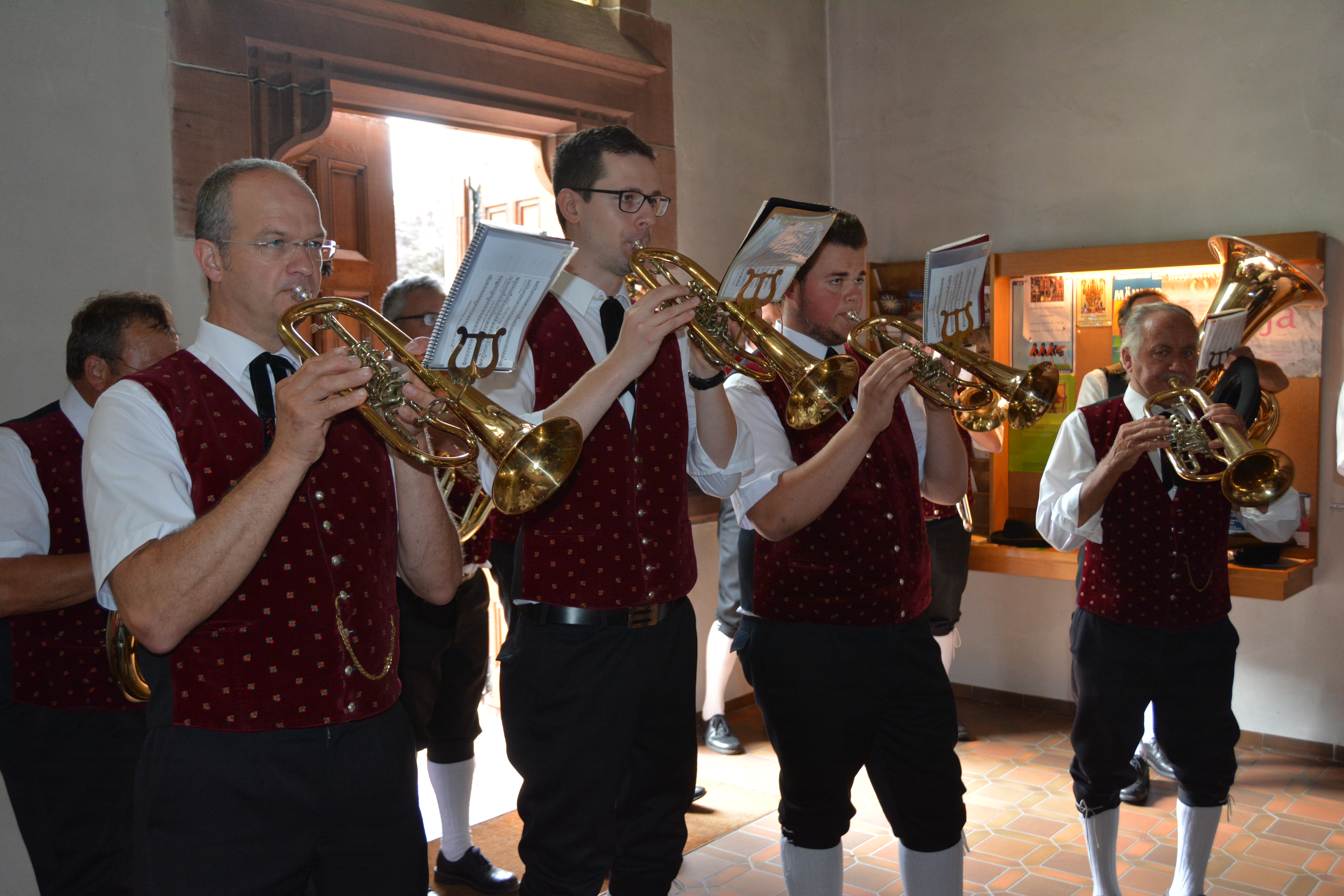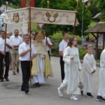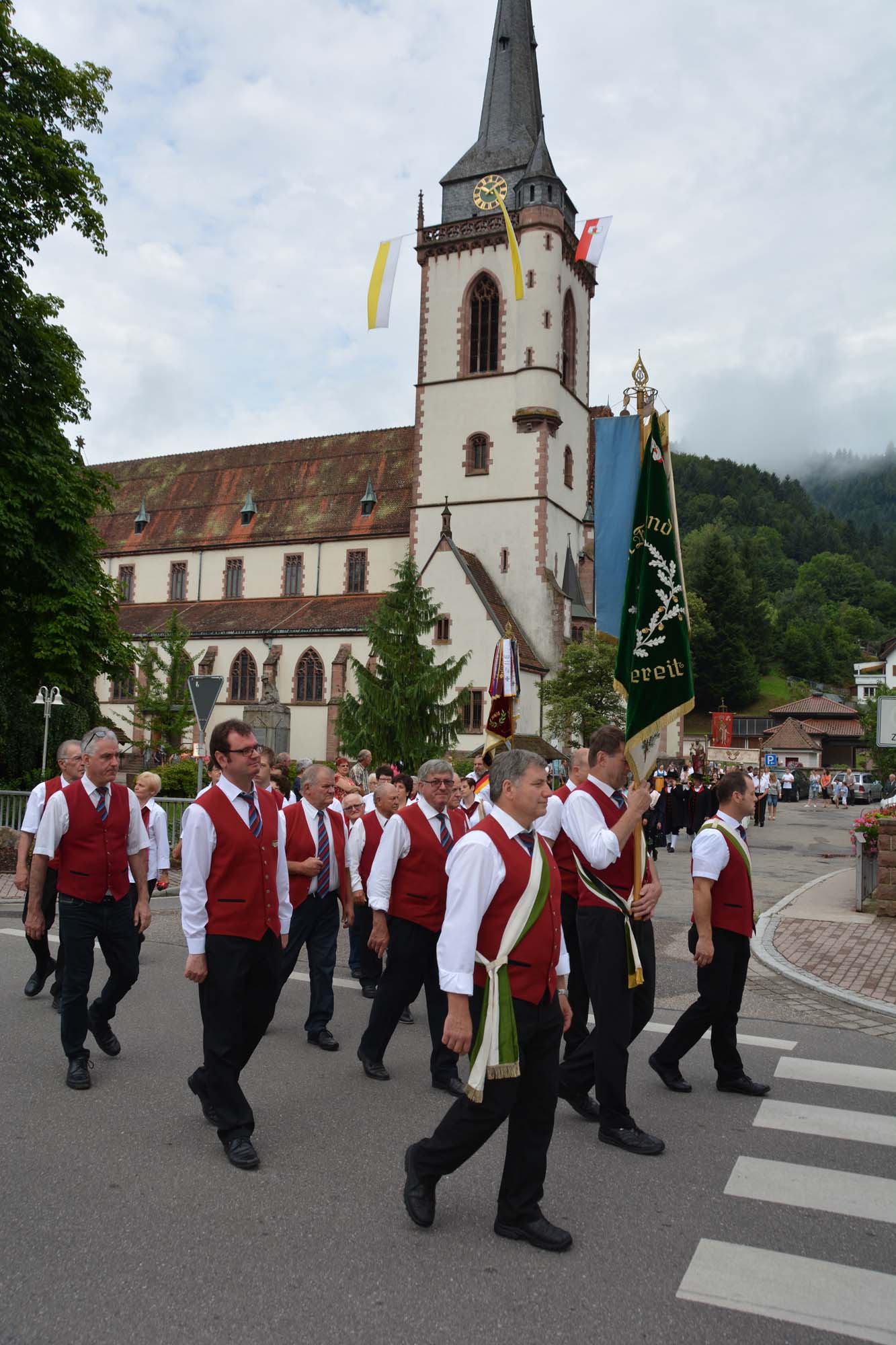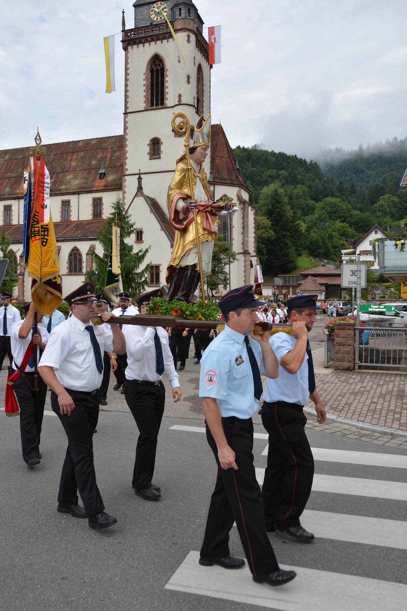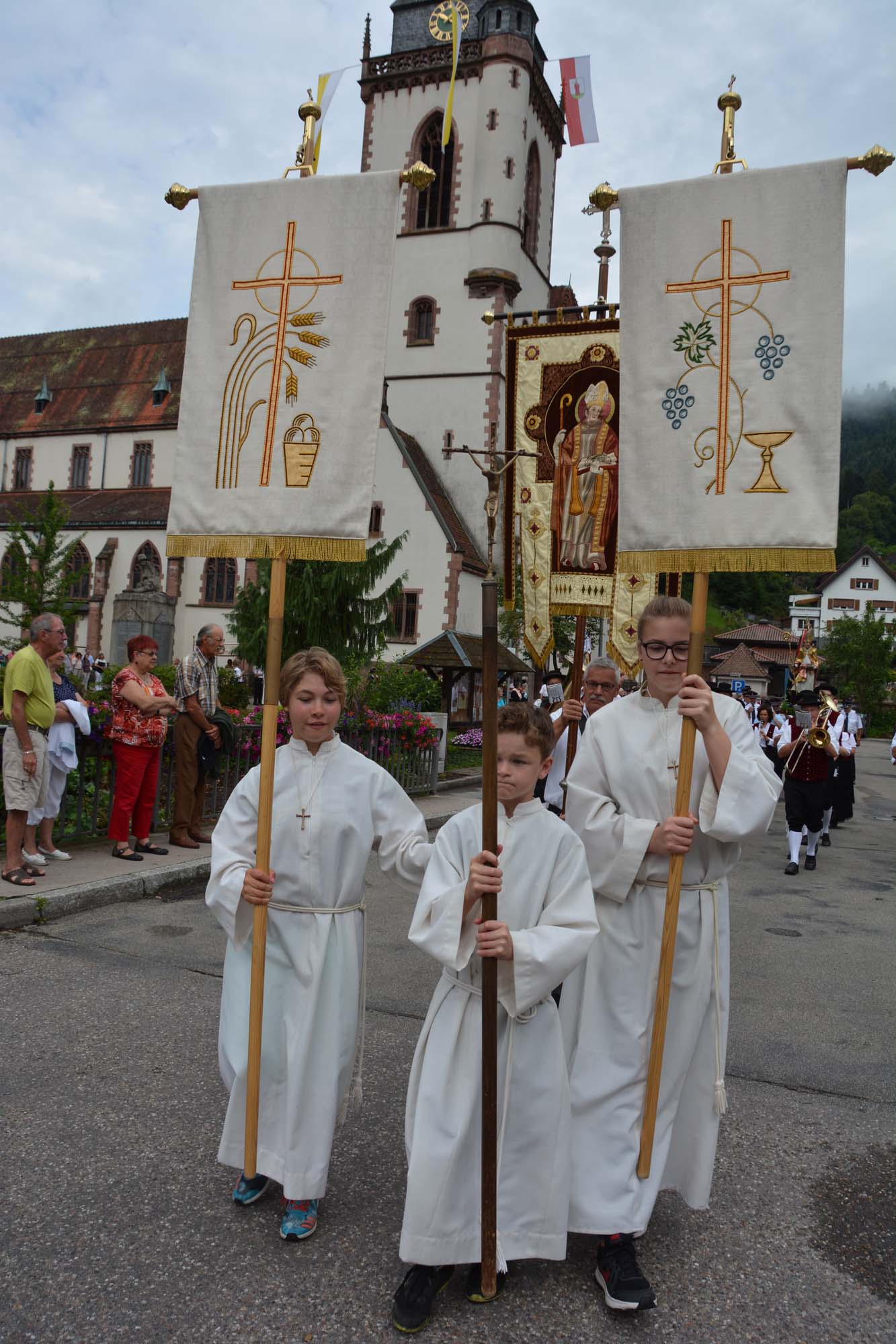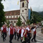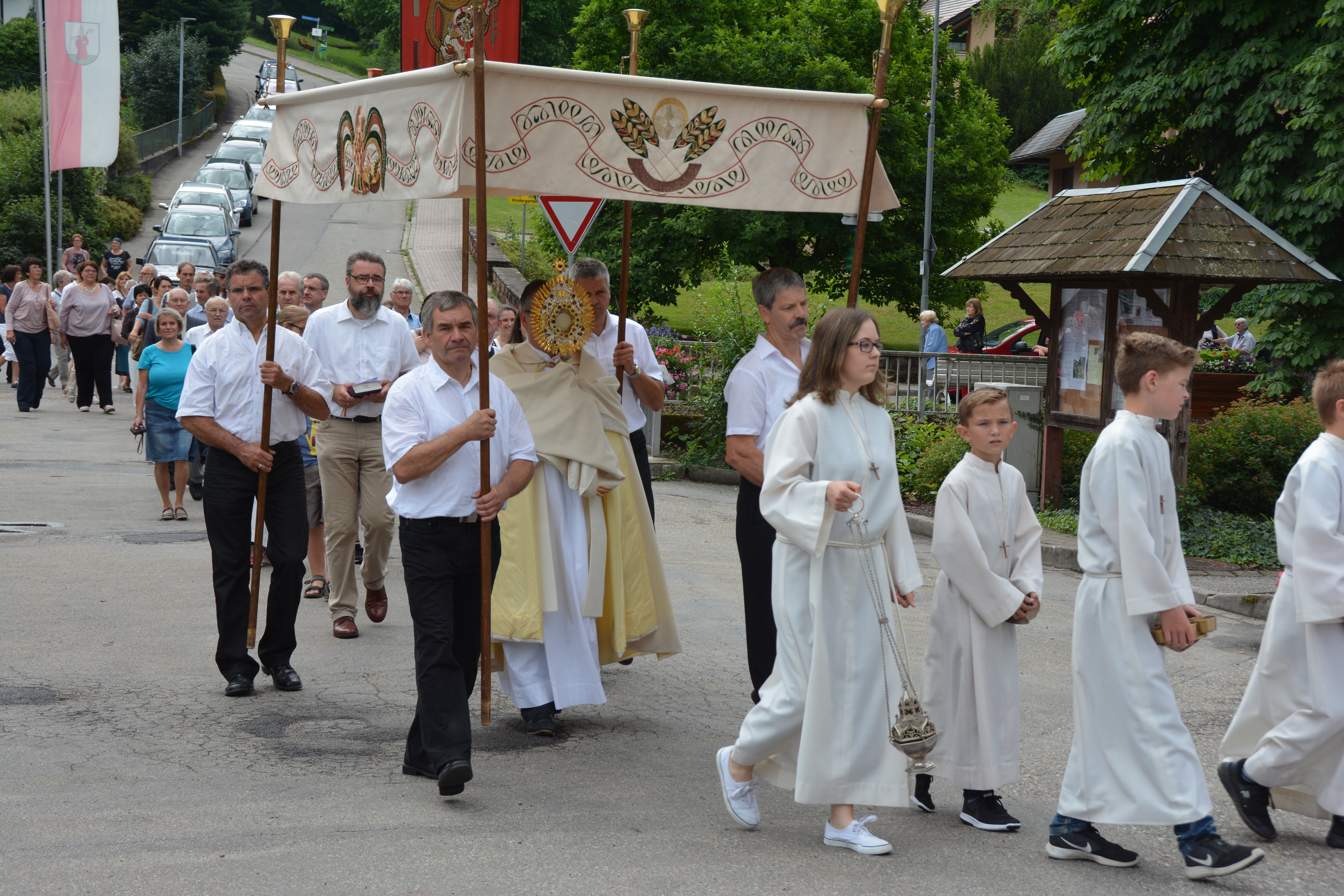 Mit traditionellen Klängen begleitete die Trachtenkapelle unter der Leitung von Dirigent Roland Weygold die Sakramentsprozession durch den Ort. Die Statue des Heiligen Ulrich wurde wie in vielen Jahren zuvor von den Männern der Freiwilligen Feuerwehr getragen, die Statuen von Maria und Josef von den Mitgliedern der Trachtengruppe. Die Abordnung der Kameradschaft ehemaliger Soldaten und der Chor der Klänge nahmen an dem praktizierten Glaubensbekenntnis teil. Die politische Gemeinde wurde von Bürgermeister-Stellvertreter Günter Eble vertreten.