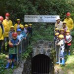 Wendelin Flach führte die Kinder, ausgerüstet mit Grubenhelm, Lampe und Schutzkleidung, in die Grube mit einer begehbaren Länge von mehr als 500 m. Gut eineinhalb Stunden lang zeigte er den Kindern auf drei Sohlen die beeindruckende Welt des Bergbaus unter Tage. Wendelin Flach informierte die Kinder sachkundig über die Geschichte und die Besonderheiten der Grube. Kristalldrusen wurden bewundert und es gab sogar eine kleine »Tropfsteinhöhle« zu sehen, wo sich über ein Meter lange filigrane Stalagtiten aus Eisenocker an der Decke gebildet hatten, am Boden gedrungene Stalagmiten.