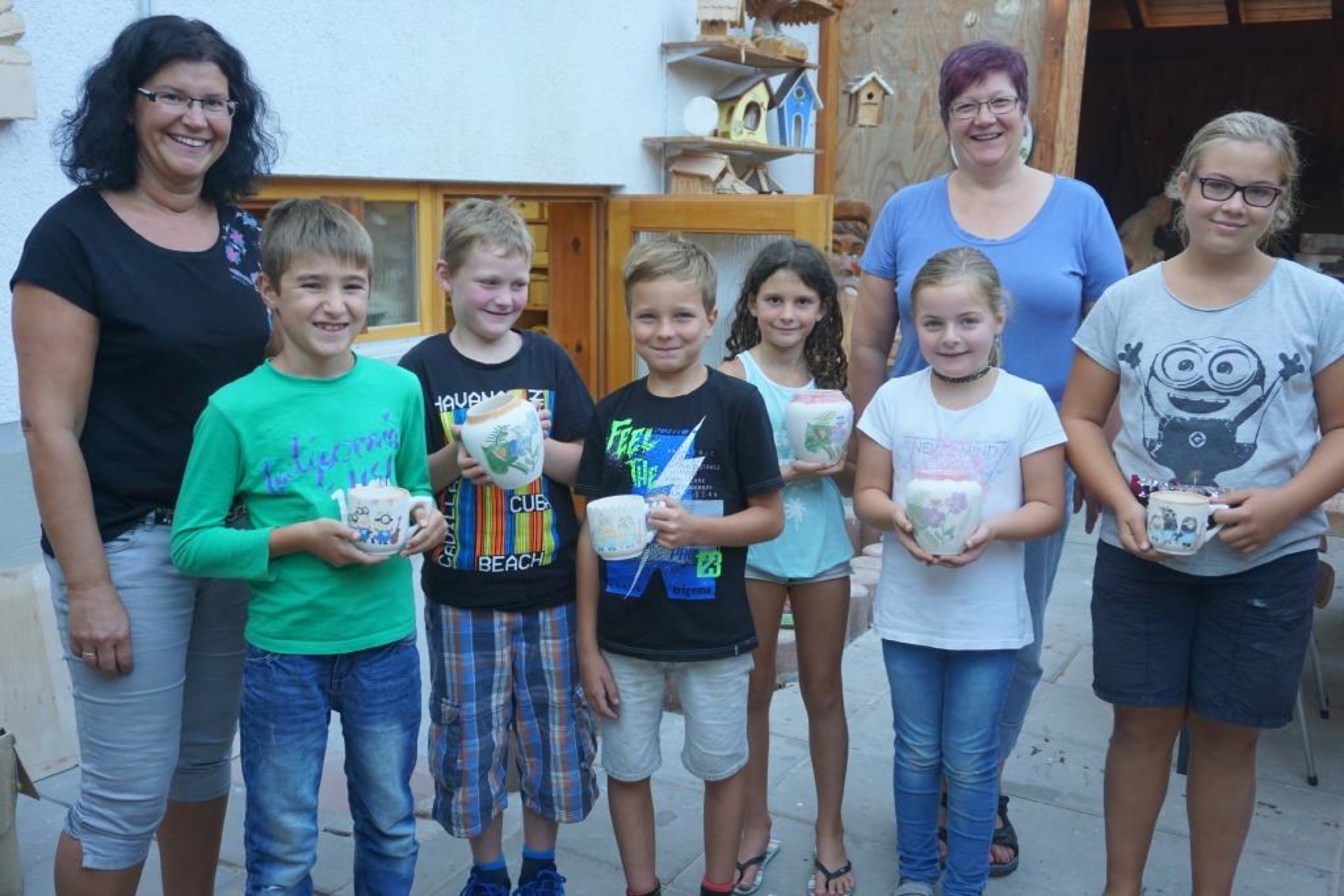 Der zweite Termin der Narrenzunft galt wieder einmal dem Keramikmalen. Unter der fachkundigen Anleitung von Berhold Eble bemalten die sechs Kinder entweder eine Tasse mit Minions oder eine Vase mit Schmetterlingen und Blumen.