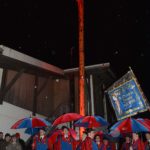 13 Meter hoch und zwei Tonnen schwer: mächtig verkündet der Narrenbaum mitten im Dorf den 44. Geburtstag der Narrenzunft. Aus Sicherheitsgründen wurde der Baum bereits vor einer Woche unter der Leitung der Freiwilligen Feuerwehr neben der Hansjakob-Halle aufgestellt. Unter dem rot angestrahlten Narrensymbol versammelten sich die Nordracher Obernarren und die Glashansel während die Piraten-Kapelle den Narrenmarsch spielte. Trotz des strömenden Regens überwog die Vorfreude auf die Jubiläums-Fasent.