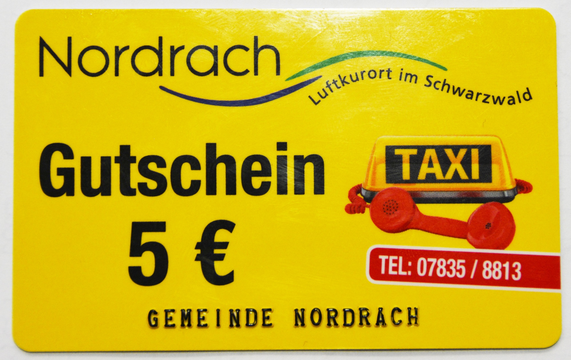 Ab dem 1. März können Fahrgäste je Taxifahrt, die als Ausgangspunkt oder als Ziel die Gemeinde Nordrach hat, maximal sechs Gutscheinkarten je Fahrt einlösen. Dies reicht zum Beispiel für eine Fahrt von der Reha-Klinik Klausenbach an den Bahnhof in Biberach. Die Gutscheinkarten können nur bei Fahrten mit dem Taxi-Unternehmen Schnurr eingelöst werden, da dieses der Kooperationspartner für die Gemeinde Nordrach ist. Die Karten werden vom Taxifahrer als Zahlungsmittel entgegengenommen. Die Firma Schnurr rechnet dann mit der Gemeinde ab und schließt damit den Zahlungskreislauf.
