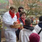 Überraschenderweise war auch die Volksbank am Eingang der Hansjakob-Halle präsent. War über Nacht wieder eine Zweigstelle eröffnet worden? Nein, aber nach einem Jahr Pause war Stefanie Boschert mit einem Korb Süßigkeiten aus Zell gekommen. Dann zogen die Hemdglunker weiter das Dorf hinauf und überall riefen sie »gitzig, gitzig« und wurden reichlich mit Gutzili und anderen Leckereien belohnt, übrigens auch von der Sparkasse Haslach-Zell an ihrer ehemaligen Zweigstelle.