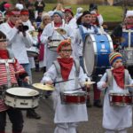 Zu den Klängen der Hemdglunkerkapelle zogen die kleinen und großen Hemdglunker vom Kindergarten aus zum Pfarrhaus. Dort warteten bereits Gisela Boschert und Barbara Fritsch mit Süßigkeiten auf sie. Weiter ging es talabwärts bis zur ehemaligen Bäckerei Geiges, zu Choco-L und wieder zurück zum Rathaus, wo die Gitzigrufe auch den Bürgermeister Carsten Erhardt und die noch vorhandene Rathausbesatzung erbarmten. Sie ließen reichlich Süßigkeiten von oben regnen. Ebenso war es beim