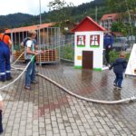 Für die Kinder hatte die Jugendfeuerwehr verschiedene Wasserspiele angeboten. Hiervon wurde reger Gebrauch gemacht und so
