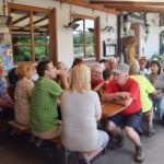 Die gemeinsame Wanderung hatte Spaß und Appetit gemacht und so ließen sich alle die kulinarischen Angebote der Mühlsteinwirtsleute schmecken. Da alle Elsässer mehr oder weniger gut deutsch sprachen, war die Verständigung kein Problem und es fanden rege Gespräche über Land und Leute diesseits und jenseits des Rheines statt, das Fußballthema durfte kurz vor der WM auch nicht fehlen.