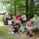 Auf dem Grillplatz Hinterhambach packten die Wanderer ihre Rucksackverpflegung aus und legten eine längere Mittagspause ein. Die Stärkung war auch notwendig, denn nun erfolgte in der nachmittäglichen Hitze der Aufstieg Richtung Mühlstein. Immer wieder mussten unterwegs kurze Ruhepausen eingelegt werden. Gegen 16 Uhr trafen alle Wanderer wohlbehalten, aber durstig auf dem Mühlstein ein, wo auf der überdachten Terrasse bereits Plätze reserviert waren.