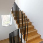 Aber auch der Bauherr eines Einfamilienhauses ist bei Holzbau Fehrenbacher gut aufgehoben. Viele Neubauten werden heute ohne Keller errichtet. Dann bietet das Treppenhaus zusätzlich begehrte Stau- und Nutzfläche. Diese kann ganz unterschiedlich mit Unterbauschränken und Schubladen ausgestattet oder als Garderobe genutzt werden. In der Kombination von Zimmer- und Schreinerhandwerk werden – alles aus einer Hand – Multifunktionstreppen geplant und erstellt.