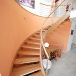 Als Beispiel wird hier eine geschwungene Treppe gezeigt, die ganz aktuell von Holzbau Fehrenbacher in einem Wohnhaus in Eppingen realisiert wurde. Formvollendet und mit gelungenem Materialmix ist ein besonderes Schmuckstück entstanden. Mit solchen Arbeiten ist der Nordracher Handwerksbetrieb überregional im Einsatz. Auch für die denkmalgerechte Renovierung einer Treppe in einer Stadtvilla in Baden-Baden wurde das Team der Fehrenbachers von den Planern als kompetenter Partner ausgewählt.