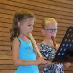 Lenya Schwendemann und Teresa Spinner traten mutig an das Mikrophon und spielten souverän, zunächst jede für sich, dann gemeinsam, insgesamt sechs Flötenstücke.