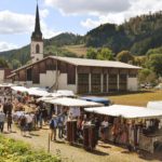 Am Sonntagmorgen strahlte die Sonne vom Himmel und das Dorf war in Feststimmung. Rund um die Kirche, vor und hinter der Hansjakob-Halle standen die bunten Verkaufsstände der Händler. Im Festzelt spielte die Trachtenkapelle Oberwolfach zum Frühschoppenkonzert auf; ihr folgten später die Fidelios und zum Abschluss die Musikkapelle Unterentersbach.