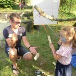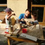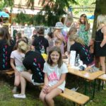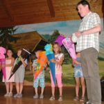 Neben Waldwoche, Zahlenland, Zoo- und Polizeibesuch standen zum Ende des Kindergartenjahres noch weitere Highlights für die künftigen Erstklässler an. Auf dem Pfarrfest stellten sie ihr tänzerisches Können unter Beweis. Nach dem gemeinsamen Begrüßungslied »Bin ich aufgewacht und die Sonne lacht«, ließen die Kinder mit dem Tanz »Wir tanzen Samba, Rumba, ChaChaCha« die Bühne im Pfarrheim wackeln. »Kein erster Schultag ohne Schultüte«, unter diesem Motto bekamen die zukünftigen Schüler ihre Schultüten überreicht. Bruder Pirmin segnete die Kinder sowie deren Schultüten und übermittelte die besten Wünsche für die bevorstehende Schulzeit. Ein weiteres Ereignis war dann die Familienfeier mit den vielen Workshops im Kindergarten. An den Stationen gab es neben der Herstellung lustiger Troll-, Drachen- oder Elfenmasken auch eine Station mit Kinderschminken und tollen Glitzertattoos. Besonders beliebt war auch die Station, an welcher die Kinder einen Schlüsselanhänger aus Holz anfertigen konnten. Wie schnell ein Armband oder Haarschmuck entsteht, erlebten die Kinder an der vorletzten Station. Durch spielerische Schwungübungen konnte augenblicklich ein Schmuckstück in den Lieblingsfarben hergestellt werden. An der nächsten Station, der Holzwerkstatt, fanden nicht nur die Jungs, sondern auch ganz besonders die Mädchen ihren Spaß beim freien Werkeln unter fachkundiger Aufsicht. Lustige Bilder für die ganze Familie entstanden schließlich an der letzten Station, der Fotobox. Bei sommerlichen Temperaturen durfte natürlich auch der Eiswagen »Venezia« nicht fehlen. Eine Stärkung fanden dann schließlich alle am reichhaltigen Buffet und der Getränketheke. Hier wünscht sich das Kindergartenteam viele helfende Hände aus der Elternschaft, damit auch künftig eine Bewirtung bei Festlichkeiten angeboten werden kann.