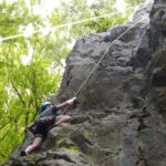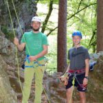 Anleitungen sind zu hören. Dann kann der Untenstehende beobachten, wie der per Klettergurt und Karabinerhaken an einem zweiten Seil hängende Timo vorsichtig rückwärts über die Felskante steigt. »Du bist fest im Seil, es kann nichts passieren«, ermutigt Nikolaus Bruder den 14-Jährigen dazu, sich dem Abgrund anzuvertrauen, sich abzuseilen, »stoß dich mit den Füßen von der Wand ab.« Das macht der Jugendliche dann auch immer wieder – zaghaft erst, dann zunehmend versierter.