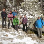 Nach einem kräftigen Hüttenfrühstück schulterten alle die Rucksäcke und begannen die einzigartige Bergwelt der Hohen Tatra zu erwandern. Mit Blick auf die Lomnitzer Spitze (2.632 Meter ü. NN) marschierte die Gruppe über Velke Biele pleso (1.612 Meter ü. NN) zur Chata pri Zelenom Plese (1.551 Meter ü. NN), auch Grünsee-Hütte genannt. Hier war Mittagspause. Man bestaunte die fantastische Spiegelung der Hütte im Grünsee. Ein folgender steiler Aufstieg mit 22 Serpentinen und vereister Felsrinne zum Sattel Sedlo pod Svistovkou (1.825 Meter ü. NN) konnte niemand davon abbringen den Gipfel Velká Svistovka (2.037 Meter ü. NN) zu bezwingen. Abwärts nach Skalnate Pleso (1.751 Meter ü. NN), wo am Steinseebach die Luftschwebebahn zur Lomnitzerspitze fährt, kehrte man gespannt beim berühmtesten Lastenträger der Hohen Tatra ein. Eine Schoki mobilisierte alle zur letzten Tagesetappe aufzubrechen. Die Zamkovskeho Hütte (1.475 m Meter ü. NN) beherbergte die Wanderer auf das Beste. Hier wurde zweimal genächtigt.