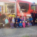 Voller Spannung und mit großem Hallo begrüßten die Kinder des kath. Kindergarten St. Ulrich die Feuerwehr mit dem Löschfahrzeug im Kindergarten.