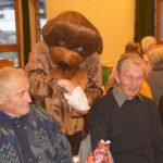 Danach gab es noch einen Überraschungsgast. Ein Bär betrat brummend den Pfarrheimsaal und entpuppte sich als Michaela Neuberger, die neue Leiterin des Nordracher Puppenmuseums. Sie überreichte jedem Gast historische Postkarten von Nordrach und einen Prospekt.