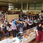 äußerst reichhaltige Kuchen­theke aufgebaut, die keine Wünsche offen ließ. Auf dem Hallenvorplatz konnten sich die Besucher, mit Flammenkuchen oder Wurst und Weck versorgt, genüsslich auch an der Sonne erfreuen, bis nachmittags der angekündigte Regen einsetzte.