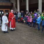 Die Gottesdienstbesucher trafen sich am Palmsonntagmorgen zunächst vor dem Pfarrheim. Pfarrer Johannes Goroll erläuterte den Kindern, darunter waren auch die Erstkommunikanten, den Sinn des Palmsonntags.