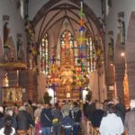 Nach der Weihe der mitgebrachten Palmen zogen die Gläubigen, angeführt von Ministranten, Kindergartenkindern und Erstkommunikanten, in feierlicher Prozession zur Kirche und erinnerten damit an den Einzug von Jesus in Jerusalem. Im Kirchenraum waren fünf große Palmen aufgestellt, die später vor den Wohnhäusern aufgestellt werden.