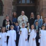 Die Erstkommunionkinder 2019: Oskar Barabasz. Alina Börsig, Eliane Görner, Mia Granieczny, Moritz Granieczny, Marie Haller, Ben Junker, Daymon Mottl, Teresa Spinner.