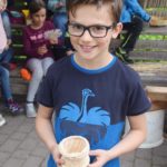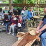 Am Montagmorgen waren vier verschiedene Gruppen unterwegs. Eine Gruppe fuhr zur Backofenschmiede, wo Karl Oehler und Heinz Glatz die Schmiede erklärten. Andere Kinder besichtigten die Maile-Gießler-Mühle, wo Paul Boschert deren Funktionsweise erklärte. In der Schulküche backten die Kinder zuvor ein Bauernbrot und zum Abschluss gab es selbst modellierte Datschkuchen, die allen köstlich schmeckten. Nach dem Besuch des Puppenmuseums bastelte eine Gruppe Puppen und eine weitere ließ sich vom Ehepaar Herp aus Ortenberg zeigen, wie Körbe aus Weiden hergestellt werden. Dann konnte jedes Kind selbst ein Körbchen oder eine Schale flechten.