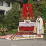 An der Kreuzung von Dorf- und Ernsbachstraße hatte die Familie Spitzmüller (»Riesebur«) einen Altar aufgebaut und davor einen prächtigen Blumenteppich angelegt. Erstkommunionkinder lasen die Fürbitten und nach der Segnung der Gläubigen mit der Monstranz zog die Prozession zurück zur Pfarrkirche, wo am hinteren Portal eine zweite Station zum Gebet einlud.
