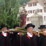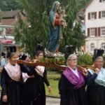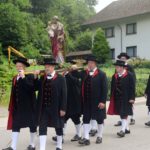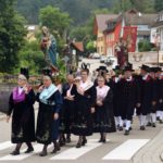 Nach dem Gottesdienst zog die Prozession auf einer verkürzten Strecke ins obere Dorf. Ministranten und Erwin Himmelsbach mit der Ulrichsfahne führten die Prozession an. Es folgten die Trachtenkapelle Nordrach, erstmals unter der Leitung von Annette Tafler, die Feuerwehr mit der Statue des Kirchenpatrons Hl. Ulrich und der Chor der Klänge. Frauen und Männer der Trachtengruppe trugen die Statuen von Maria und Josef. Es folgten die Erstkommunionkinder mit ihren Eltern. Den »Himmel« trugen Dieter Herrmann, Gerold Herrmann, Reinhard Herrmann und Michael Fehrenbacher. Pfarrer Bonaventura Gerner trug die Monstranz unter dem „Himmel“. Dahinter folgten die übrigen Gläubigen.