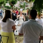 Zur feierlichen Hochzeit von Alina Kimmig und Patrice Heidmann umrahmten die Musikerkolleginnen und Kollegen der Trachtenkapelle Nordrach am Samstag die kirchliche Trauung und spielten anschließend im Kurpark beim Sektempfang auf.