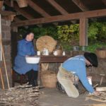 Der hintere Teil der überdachten Terrasse, bot die ideale Kulisse für die kleine Aufführung welche nun folgte. De »hoorig Lenz«, Knecht auf dem Mühlstein (Egbert Laifer), spaltete Holzspengeli und beklagte sich dabei wie schwer er doch auf dem Hof arbeiten müsse und unter der strengen Obermagd Vidor zu leiden habe. Sehr zur Belustigung der Zuschauer, erst recht als auch die Vidor sich dazu setzte und Erbsen ausstrich.
