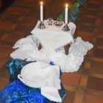 Im Mittelgang zum Altar beginnt der Weg mit der ersten Station, die den Palmsonntag darstellt. Ein Esel, auf dem Jesus in Jerusalem eingezogen ist, symbolisiert den Palmsonntag. Danach führt ein grünes Tuch zur nächsten Station, dem Gründonnerstag. Eine Schüssel für die Fußwaschung und ein kleiner Altar mit Kelch und Schale symbolieren das letzte Abendmahl. Es folgt eine Dornenkrone mit einem Kreuz, die das Geschehen des Karfreitags mit Verhör, Peinigung und Kreuzigung darstellen. Ein Stein mit Tuch symbolisiert das offene Grab und in leuchtenden Farben führt danach der Weg die Stufen des Altars empor zu Osterfeuer und Osterkerze, den Symbolen der Auferstehung Christi.