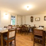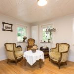 Kein Stuhl gleicht hier dem andern, ebensowenig die Tische, auch nicht im »Blauen Zimmer«, in dem eine schwere Tapete und weitere ausgesuchte Antiquitäten das Bild prägen. Nebenan liegen die modernen Sanitärräume, mit stilisierten Bildern der Nordracher Tracht an den Eingangstüren für die Dame und den Herrn.
