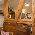 Es war ein hartes Stück Arbeit, staubig und zäh gleichermaßen. Was erhaltenswert schien, wurde sorgfältig geschont. Die Holzdecke aus dem vorletzten Jahrhundert wurde restauriert. Das Riegelholz der Zwischenwände passt zur heimeligen Wohnzimmeratmosphäre, die ehemals dazwischen liegenden Backsteine fanden als Ummauerung der modernen Theke einen neuen sichtbaren Platz und schlagen wieder einen augenscheinlichen Bogen von der Vergangenheit zur Gegenwart. Die Holzdielenböden sind original und zeigen im wahrsten Sinne des Wortes die Bodenständigkeit der neuesten Nordracher Errungenschaft, eine solide Ergänzung für eine »gute Stube«.