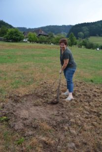 Beim Umgraben besteht das Problem, dass dies für die extensiv bewirtschaften Mähwiesen und die noch strenger geschützten FFW-Wiesen nicht erlaubt ist. Es bedarf also zunächst der Zustimmung des Landwirtschaftsamtes und der Naturschutzbehörde, um diese Maßnahme einzuleiten. Zwei Flächen der Landwirte Michael Schmieder und Heinrich Repple wurden versuchsweise umgepflügt um das Ergebnis zu beobachten.