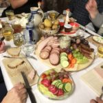 Unterwegs gab es viele Geschichten aus ihrem einfachen Leben und ihre Begegnungen mit der Sagengestalt des Moospfaff. Belohnt wurde die Gruppe mit einem sagenhaften Bauernvesper im urigen Brennhäusle vom Boscherthof: verschiedene Wurstspezialitäten, Pellkartoffeln, selbstgebackenes Brot, Bibeliskäs, Gurken, Zwiebeln und Schnittlauch.
