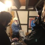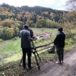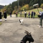 Der nächste Drehtermin war die Nachmittagswanderung am Mittwoch mit dem erfahrenen Nordracher Wanderführer Josef Laifer, der das Fernsehteam und die Wanderer mitnahm auf eine abwechslungsreiche Wanderung über das Ernsbachtal zum Bergbauernhof Haas. Am Haseneck empfing das »Echo vom Mühlstein« die Wanderer mit eindrucksvollen Alphornklängen. Antonia Haas reichte ihren Gästen einen vollmundigen Aperitif: Moospfafflikör mit geeisten Heidelbeeren und spritzigem Sekt. Gemütlich wurde es dann auf der sonnigen Terrasse des Hofes. Mit Apfelsaft, Most, Kaffee und Tee und dazu die für den Moospfaffmonat typische Moospfafftorte wurden die Gäste verwöhnt. Die Wanderer blieben gerne noch ein Weilchen während der Besuch vom SWR zurück ins Dorf musste und dort Thomas Faisst, den Köhler des Nordracher Kohlemeilers aus dem Jahr 2019, kennen lernte, der ihnen aus dem Märchen »Das kalte Herz« vorlas und so den Einstig in die Schwarzwälder Sagen- und Geschichtenwelt darbot.