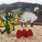 Unter der Federführung von Michaela Neuberger wurden 14 lebendige Rätsel- und Erlebnisstationen gestaltet: unzählige Eier und Körbchen, 6 Hühner, 4 Küken, 16 Osterhasen, 2 große Schafe und 3 Lämmchen, 2 neue Igel, 2 Eulen, 3 Spechte und 6 neue NORDIs wurden ausgesägt und liebevoll bemalt.